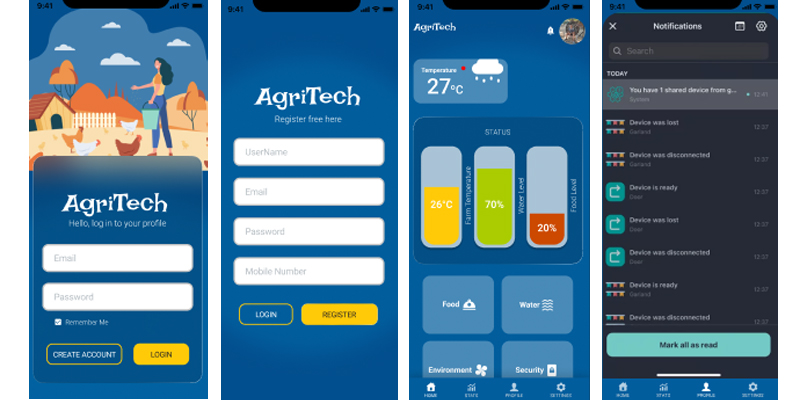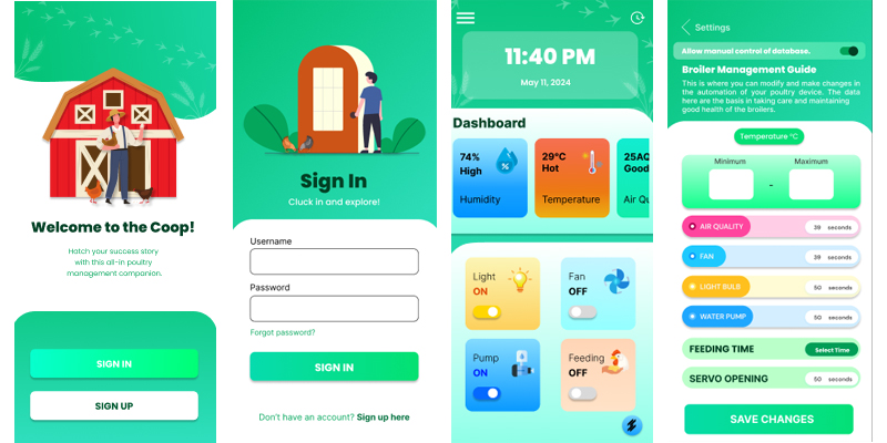 A complete IoT solution for modern poultry farming: real-time monitoring of water levels, feed schedules, temperature/humidity sensors, and remote control via a cross-platform mobile app. Keeps birds healthy and reduces manual labor.