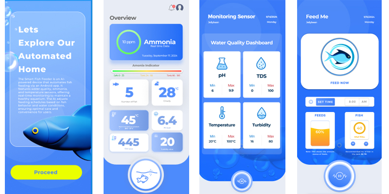 A comprehensive solution for modern fish farming: real-time monitoring of water quality (pH, temperature, dissolved oxygen, turbidity), automated feeding schedules, and remote management through a mobile app. Improves fish health, reduces mortality, and optimizes resource usage.